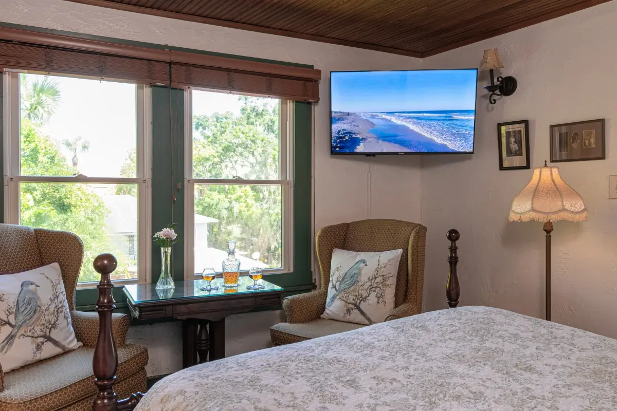 After a day exploring the St. Augustine Lighthouse or the Lightner Museum, return to your inviting oasis. Enjoy the convenience of an in-room refrigerator, relax in the soothing whirlpool tub and shower, and unwind in total comfort with individually controlled heat and air conditioning. Here, every detail is designed for your relaxation and privacy, creating an ideal setting for a romantic getaway.