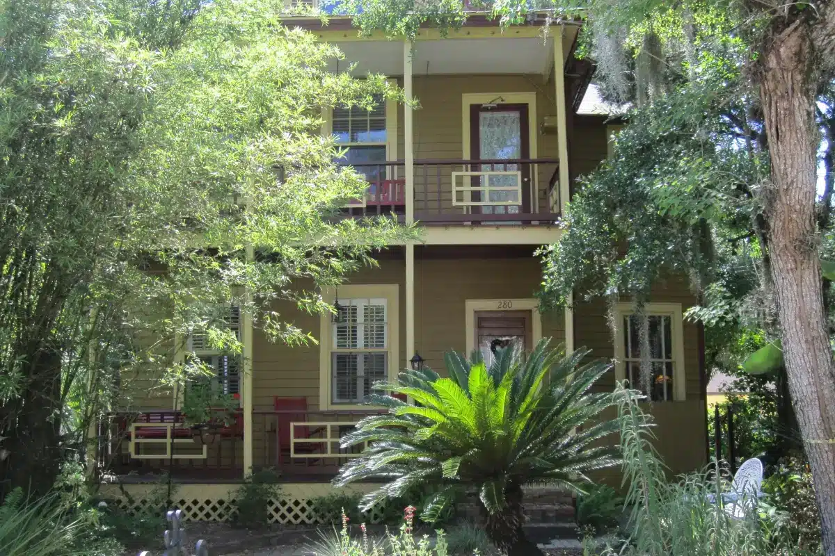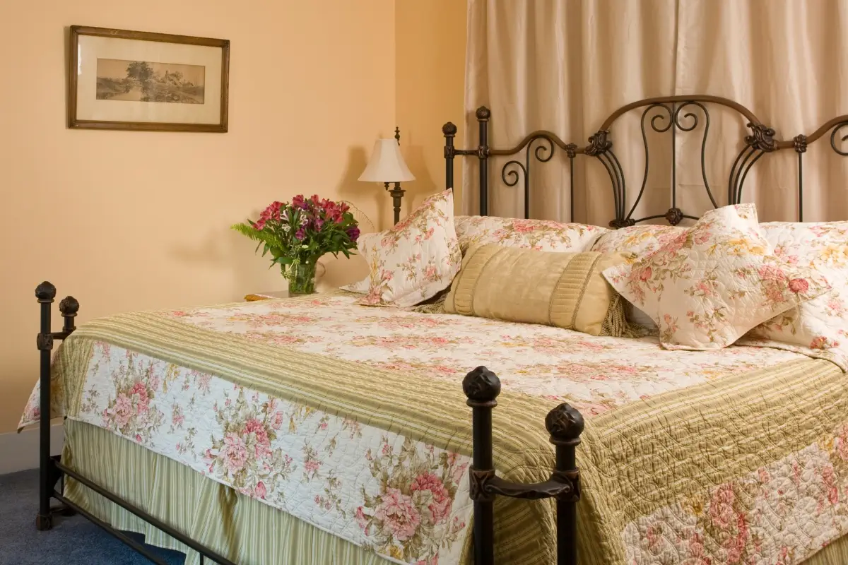 Claim your own private oasis in the Wilson Suite, a welcoming two-room suite on the second floor of our historic Wilson House.This spacious retreat features a king-sized bed, a soothing full bath with a two-person whirlpool tub and shower, and a bright sitting room with a queen sleeper sofa. It’s the perfect choice for couples or friends planning a relaxing getaway. Step out onto your private porch for a front-row view of award-winning gardens and the lively charm of St. George Street.